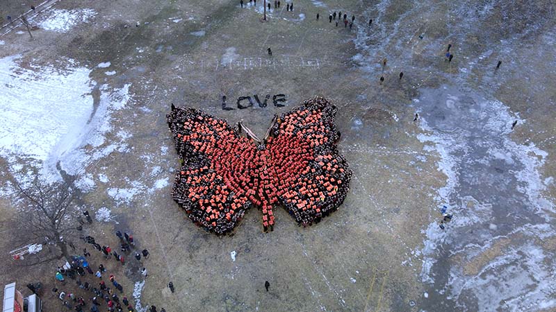 Some pictures of his work include the most incredible human mural Kaleidoscope of Love, his work at Beyond Borders, the Giant Farmer of Plain, and Snowflake).