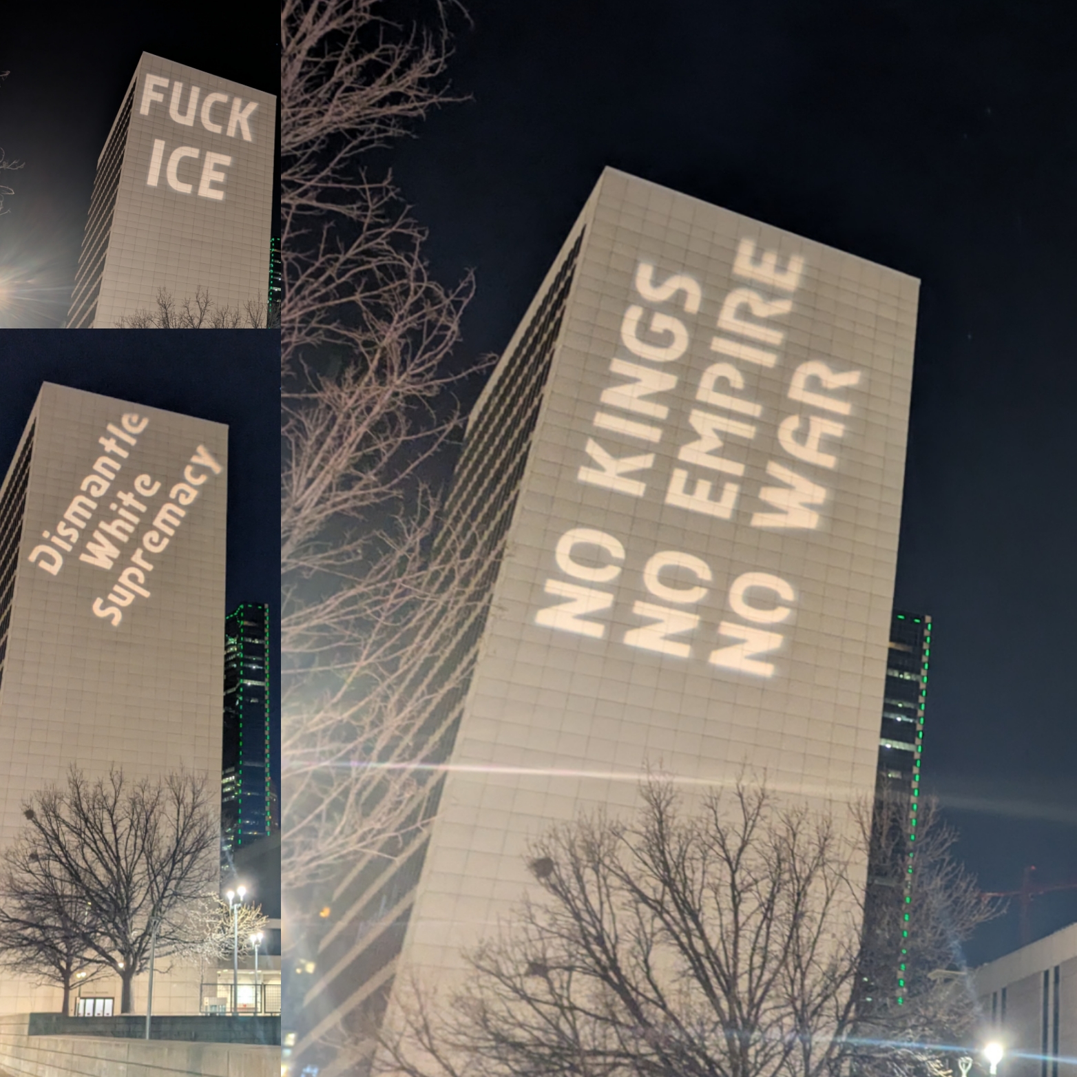 Fuck ICE, Dismantle White Supremacy, No Kings, No Empire, No War.