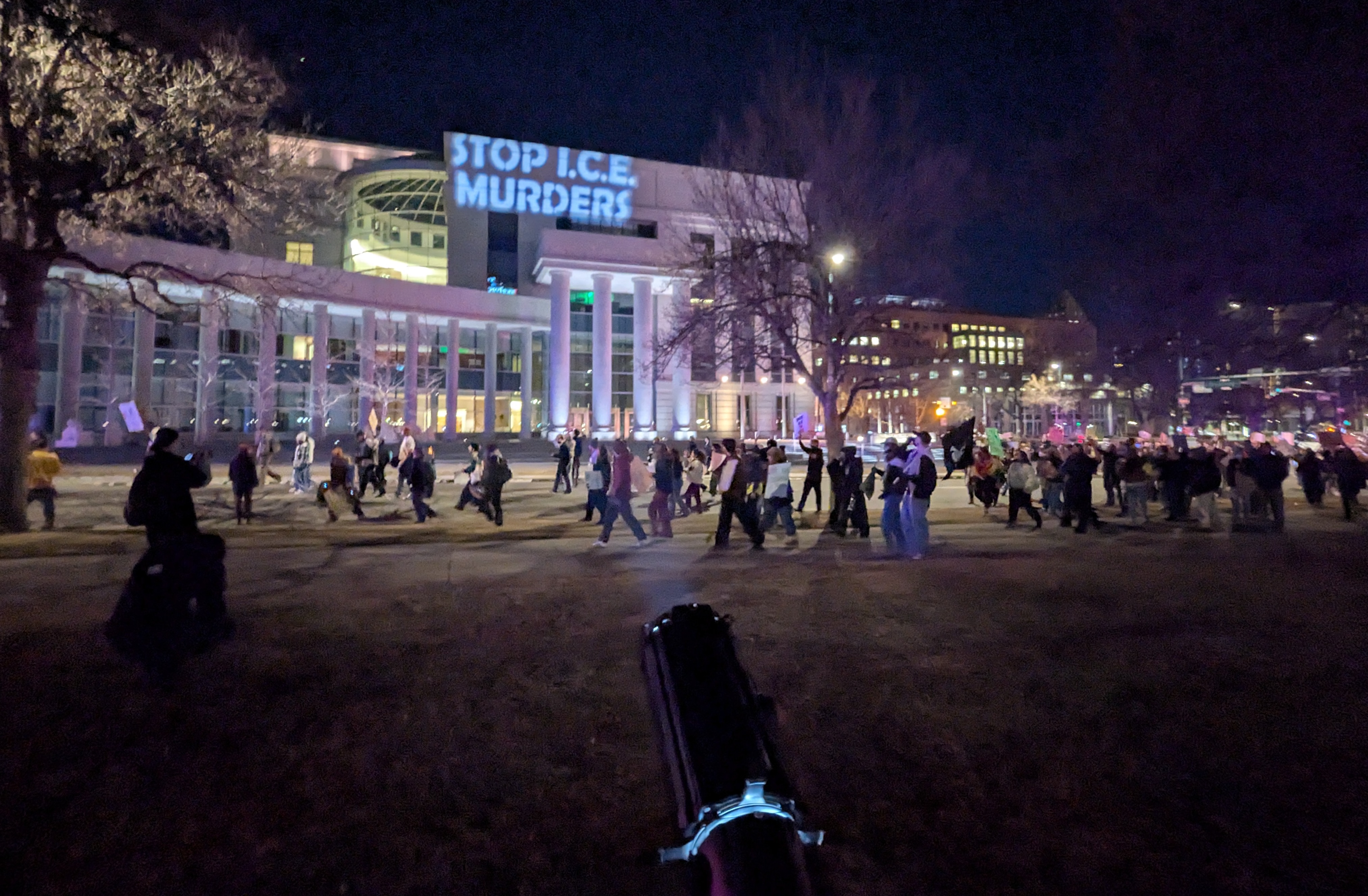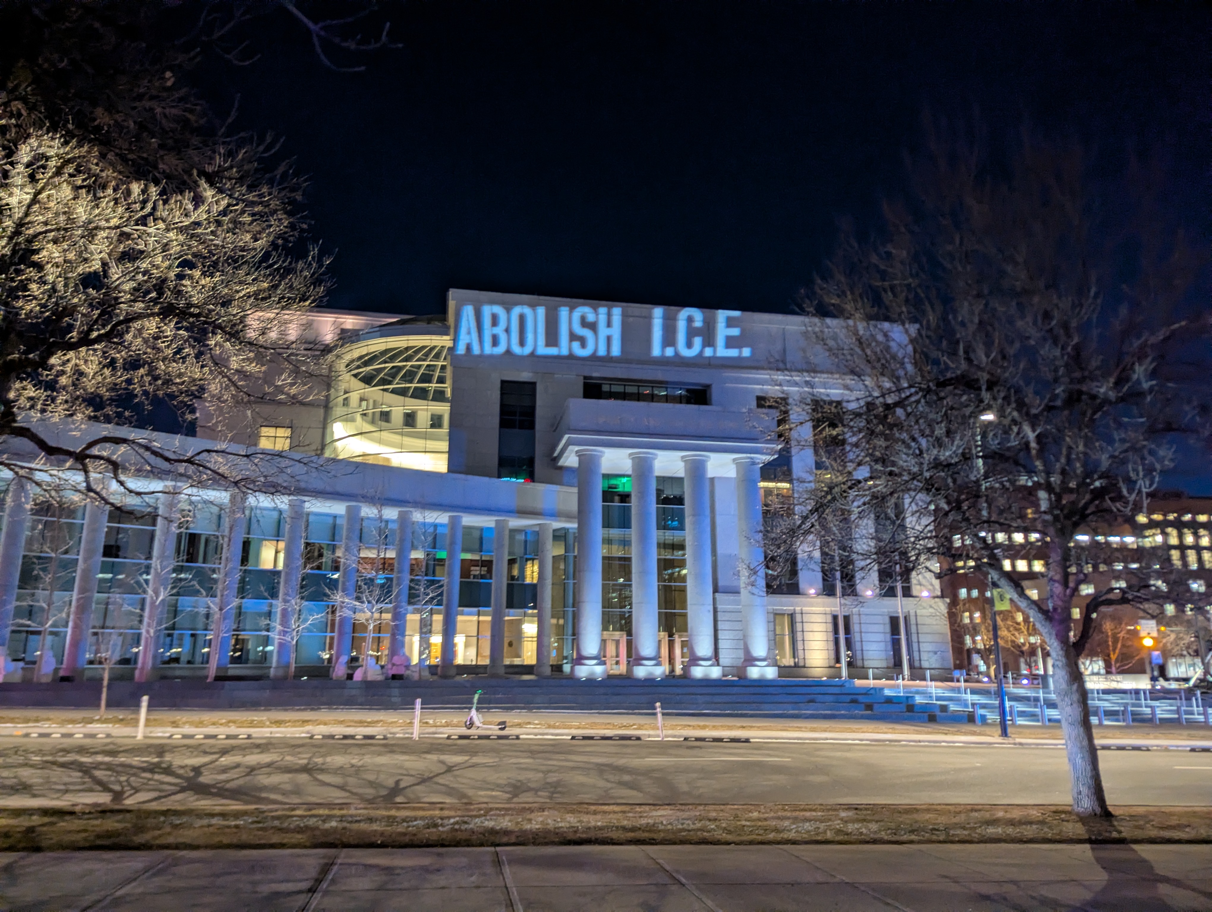 Colorado Court of Appeals GOBO (goes before lens) projections. Abolish ICE & Stop ICE Murders