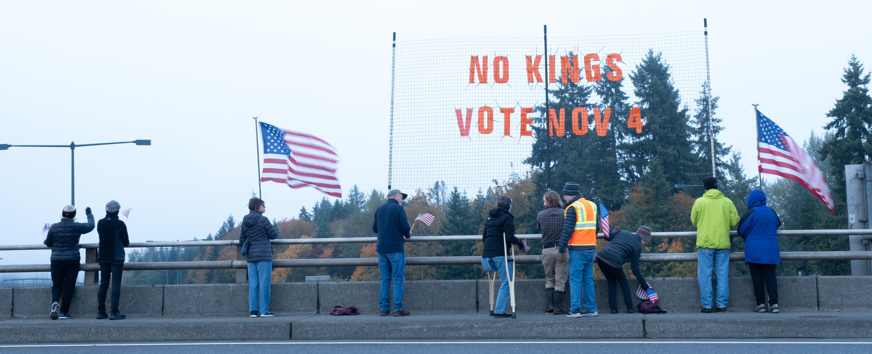 Kirkland Bannering Crew showing their spirit for No Kings & the Nov.04 vote. Well done everyone!