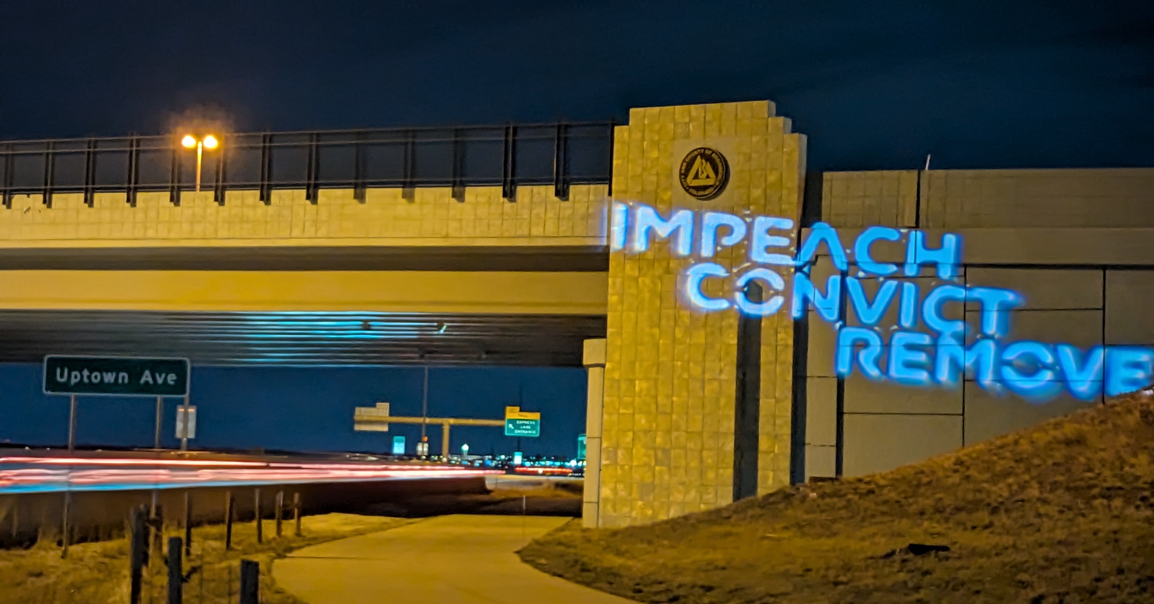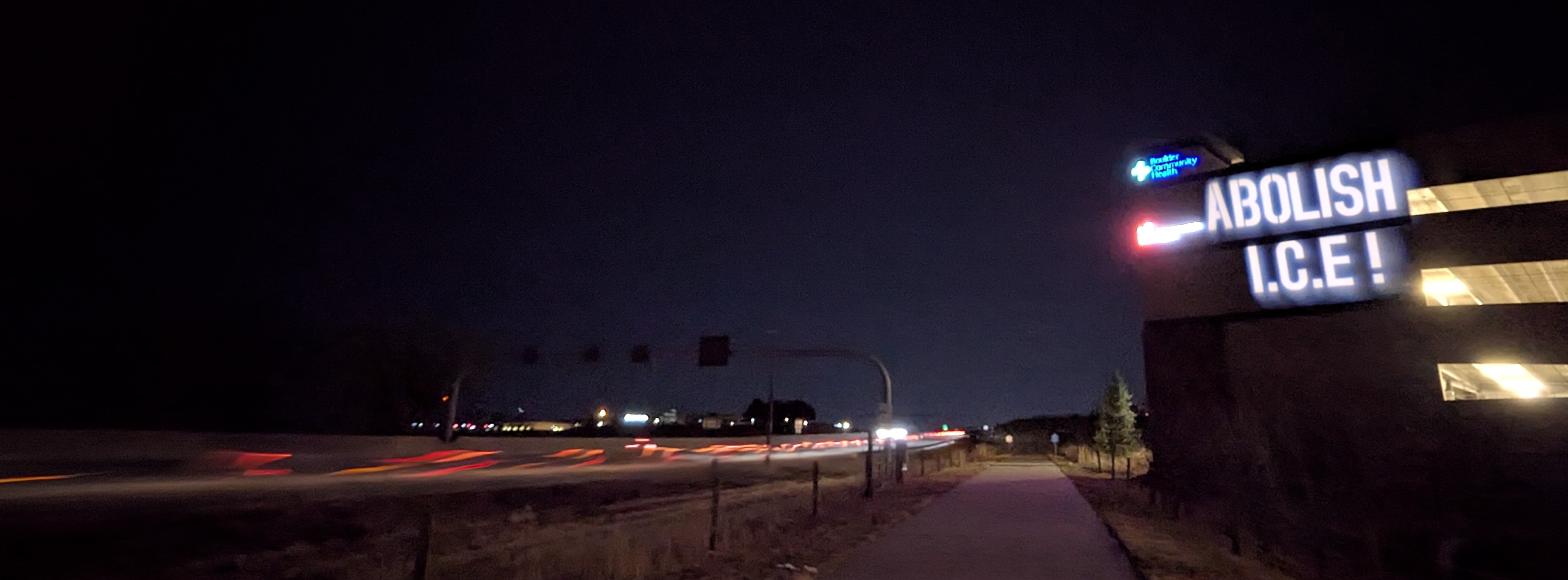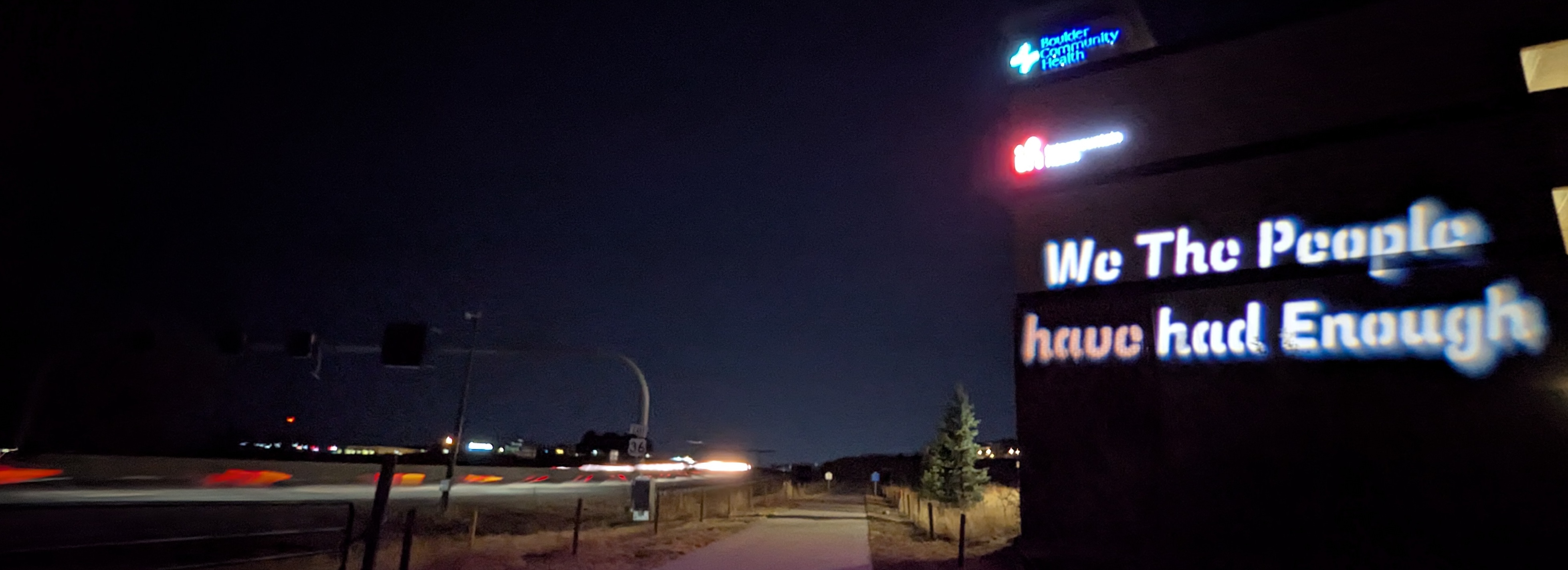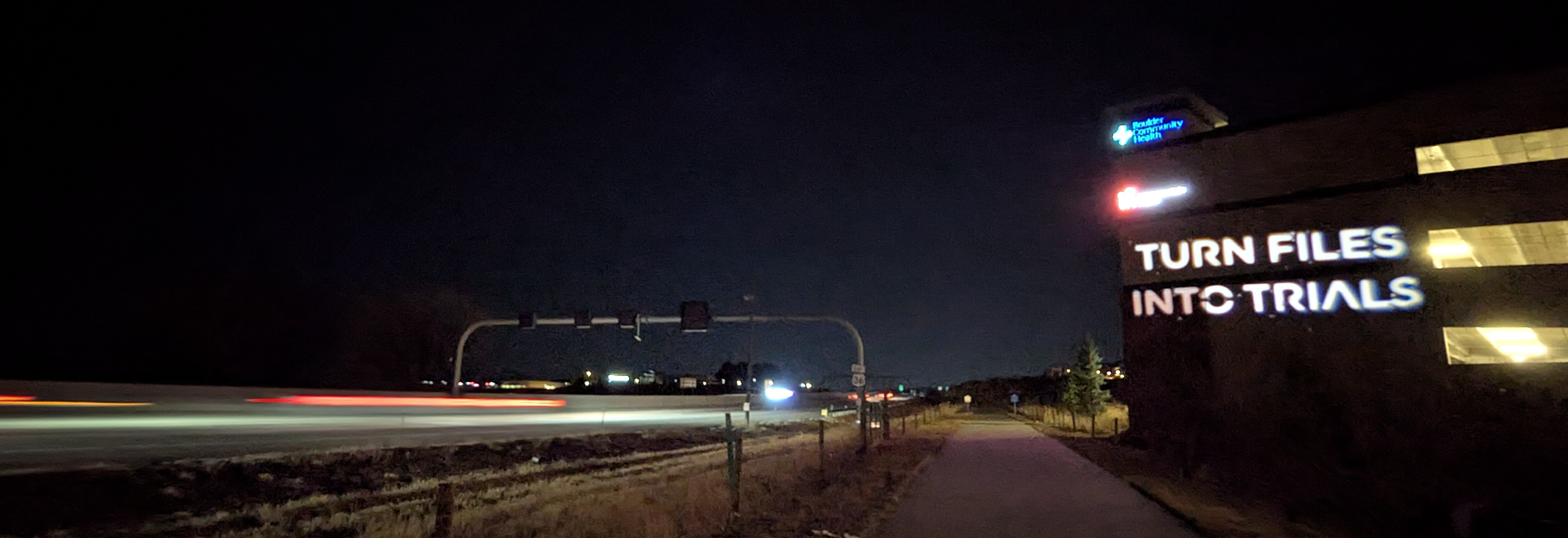 GOBO Color LED projection using a Source4 15-30 lens barrel. Good location at bottom of a straightaway near he bottom of along gentle hill.