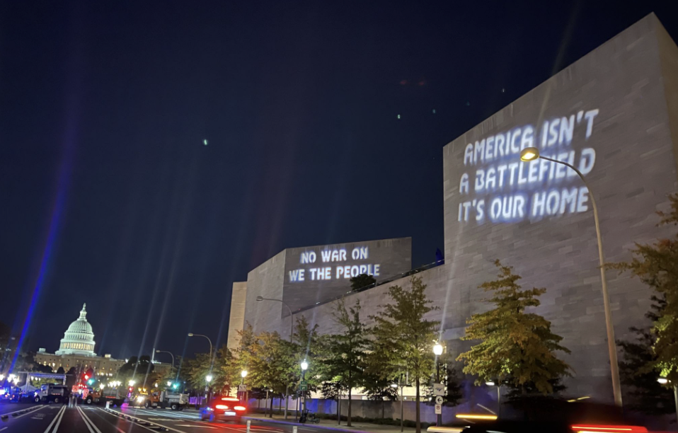 The weekend of events started with the debut of the chain gang at the Lincoln memorial. A projection as the National Art Museum was the next event of the weekend. The next day featured the chain gang in front of We the People during the march. The amount of publicity that was generated thanks to the 2025 chain gang was incredible. Thank you to everyone who volunteered and participated in DC to make these events an incredible success.