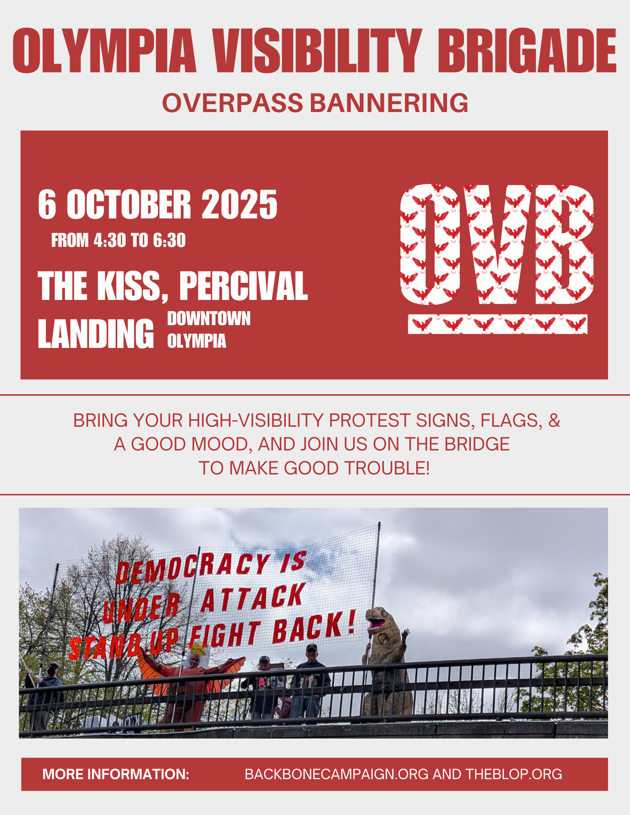 Impatient for the next big protest? Olympia Visibility Brigade is too! Join them weekly to make good trouble!