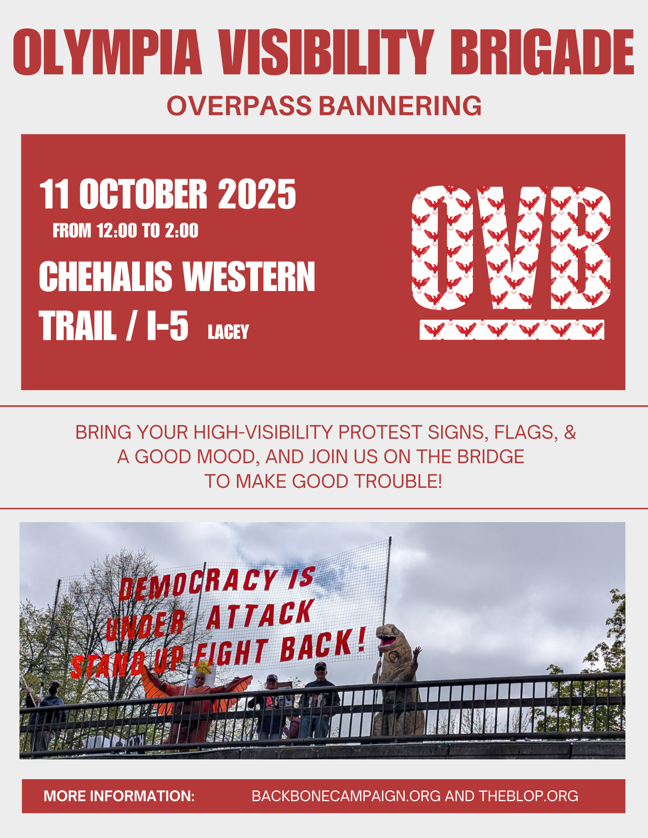 Impatient for the next big protest? Olympia Visibility Brigade is too! Join them weekly to make good trouble!