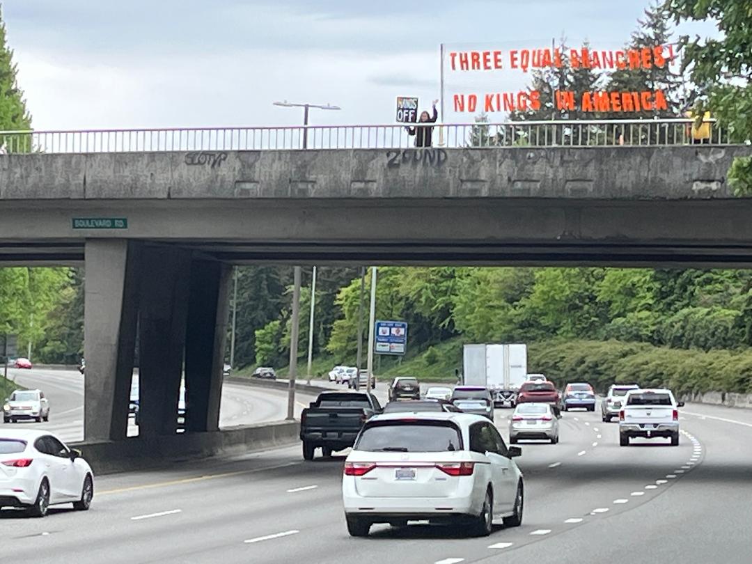 This group has been out and about in the Olympia area on Mondays and Saturdays. Check out our calendar to join their next action. Stay tuned for more messaging for "No Kings" as there will be another national movement on June 14!