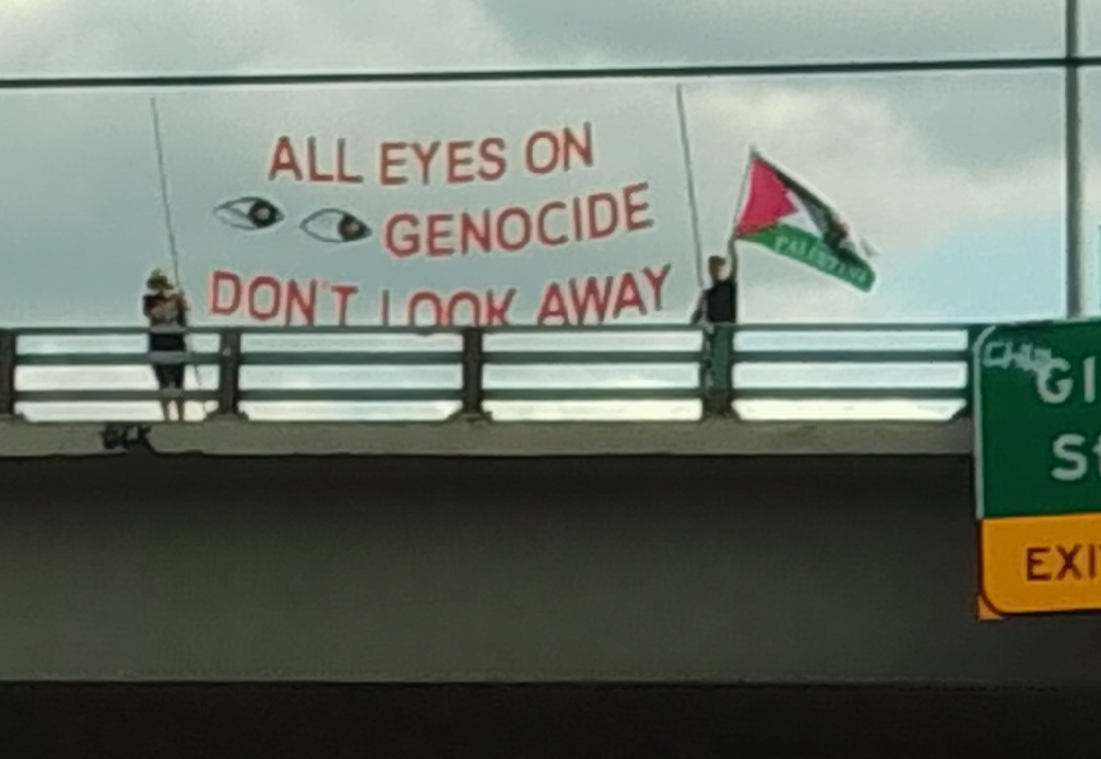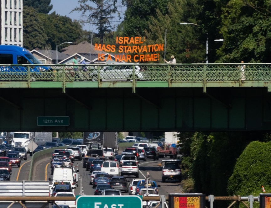 Our Solidarity Brigade members in Portland, OR who are usually seen doing light projection have joined the bannering ranks!