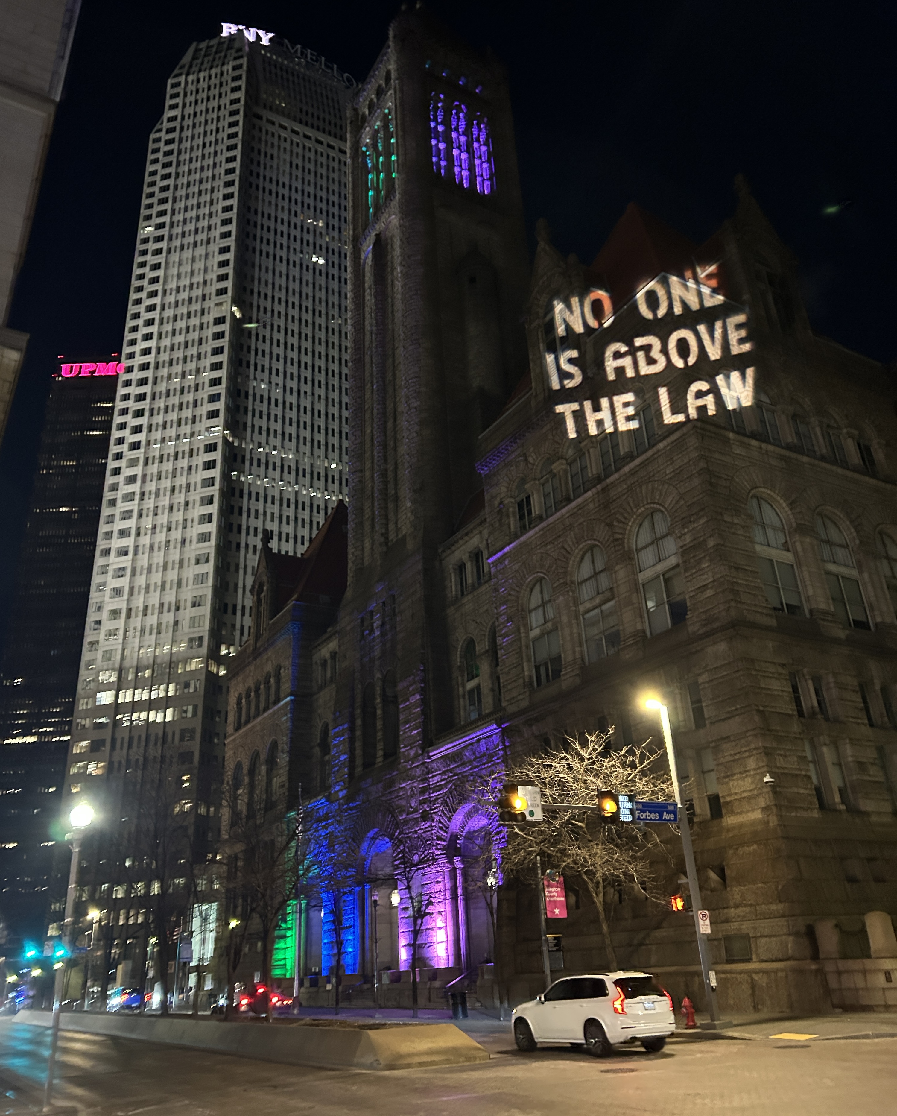 Pittsburgh Projections With A Puporse Facebook page, definition of Yinzer, and field notes: We got a chance to put our Source 4 light to work along with 2 digital projectors. On Friday night we sat up directly across the river from the city in a highly visible warehouse. Saturday night we sat up in downtown and projected onto multiple buildings. Beautiful work!