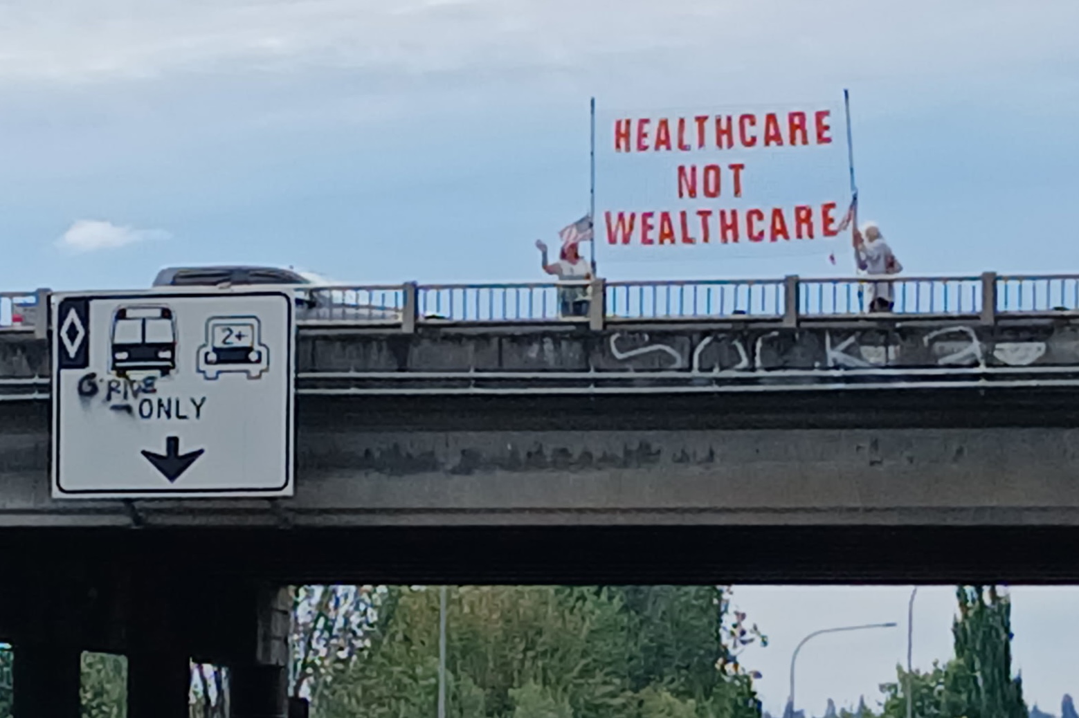 Our friends in Fife are active and proud. We love to see their continued efforts of banner after banner taking a stand against what is currently happening. One of their banners was deployed at the Tacoma Indivisible bannering event near Tacoma Mall on Labor Day.