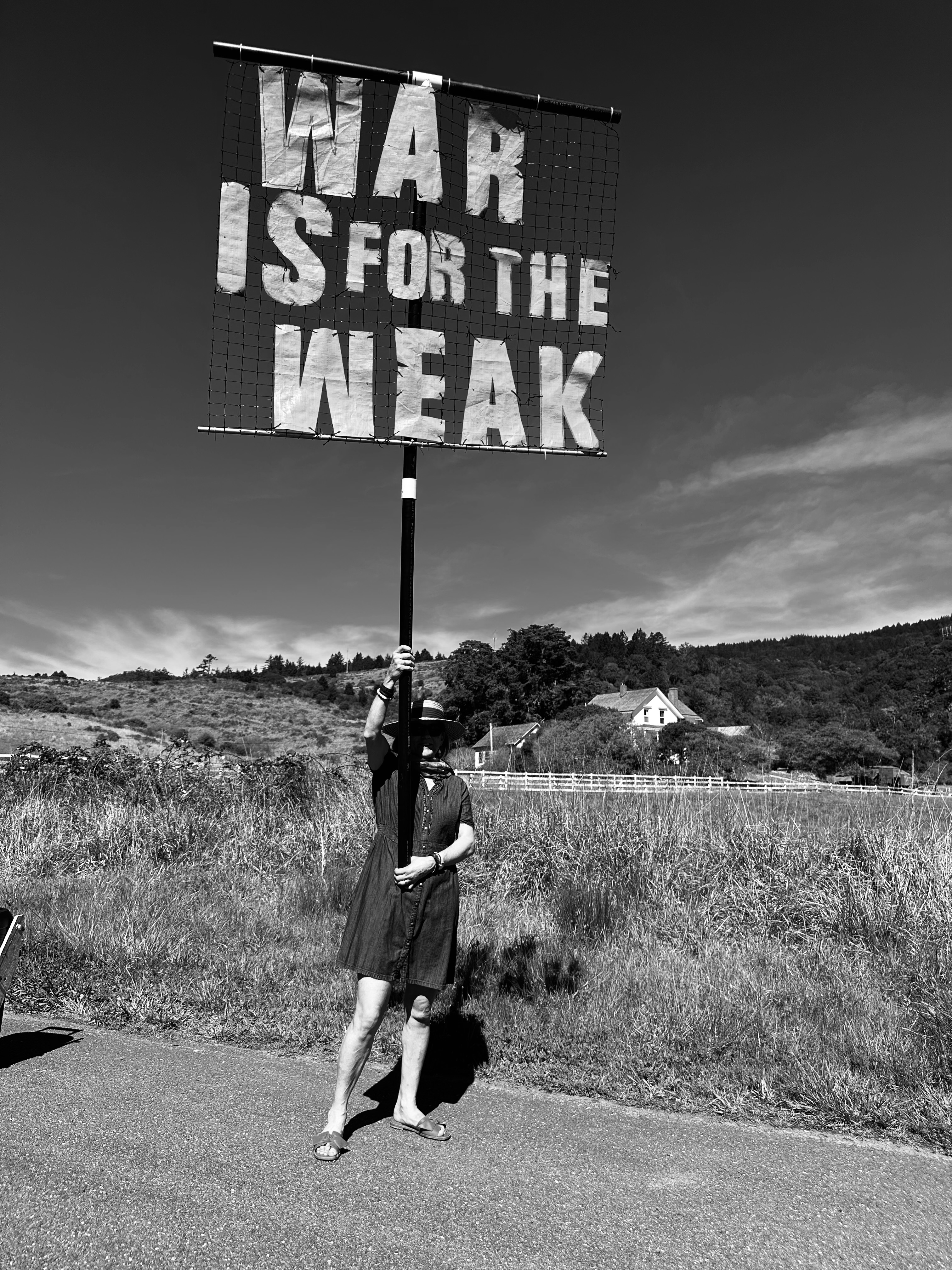War Is For The Weak, B&W, against dark stormy skies,