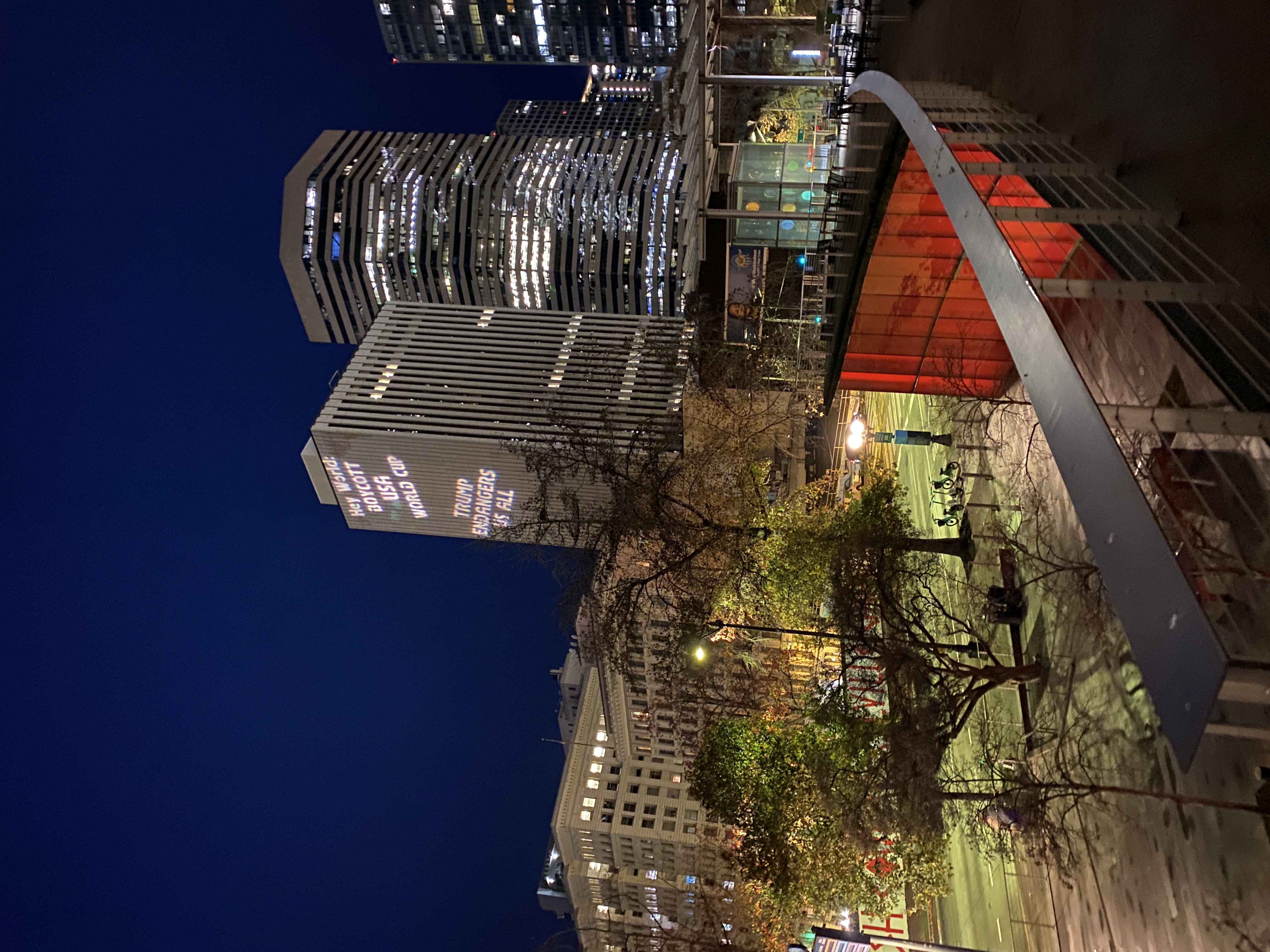 Seattle city scape illuminated at night by Backbone Campaign light projections. Great views, visually and emotionally striking.