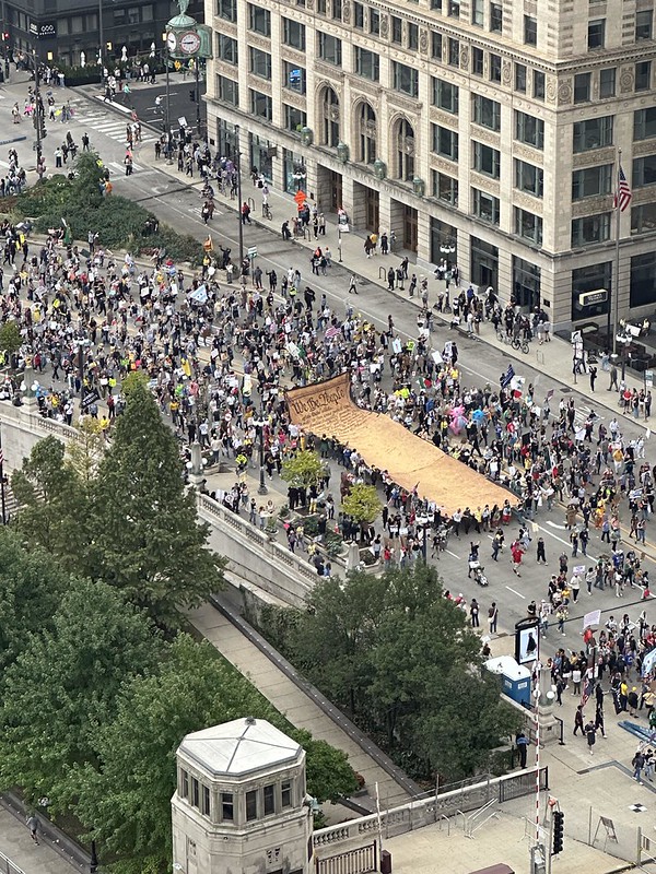 A team of 3 traveled from Vashon Island to the beautiful city of Chicago with one of our 3 giant constitutions. Lucy, dune, and Adria set up the We the People Preamble before the rally and invited folks to sign their name, demonstrating their commitment to “a more perfect union.” Once the march started, they made their way through 2.5 miles of city blocks, in a crowd of at least 250,000 people - "a phenomenal experience," reported Lucy, Backbone Campaign’s Artful Activism Coordinator.