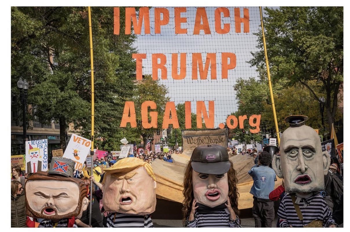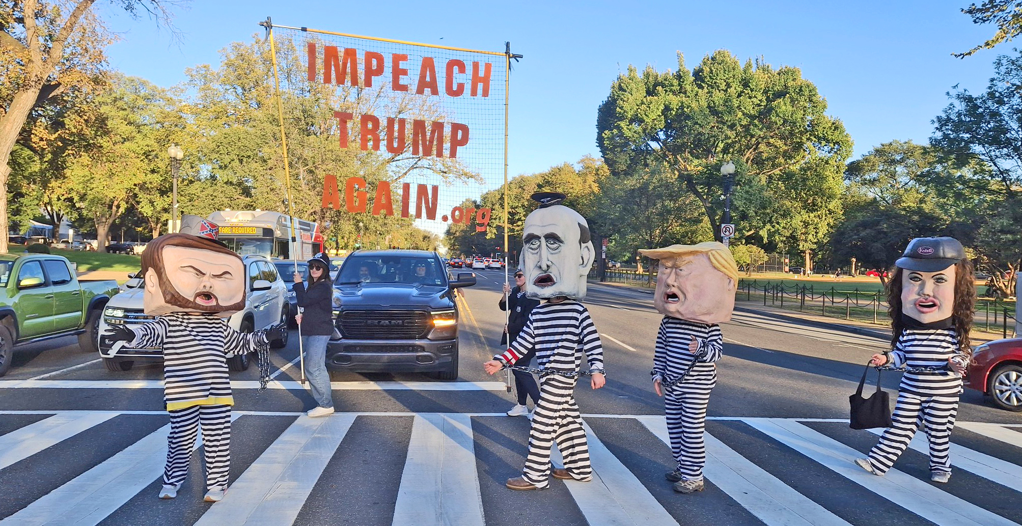 No Kings DC ReportOn Friday, 10/17, Backbone debuted our not-so-Fab-Four Criminals - the Impeachment Chain Gang. These four bobbleheads were handmade by one of our founding artists and many volunteers on Vashon Island, who make so much possible at Backbone. Bill took them out at the Lincoln Memorial for some “community service and beautification”, at a pre-rally to the No Kings event. May they inspire true accountability for the violence and destruction they are inflicting.