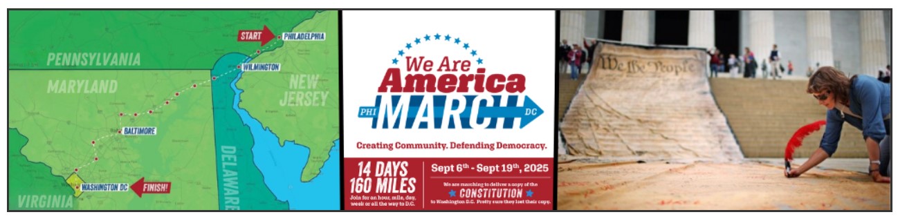 In our June newsletter, we shared about the incredibly successful deployment of our We The People Preamble in LA, for No Kings Day, as well as in Seattle. Now we are preparing for this iconic prop (of which we have now three We The Peoples!) to hit the road, joining the We Are America March. The March goes from Philly to DC., Sept 6-19.